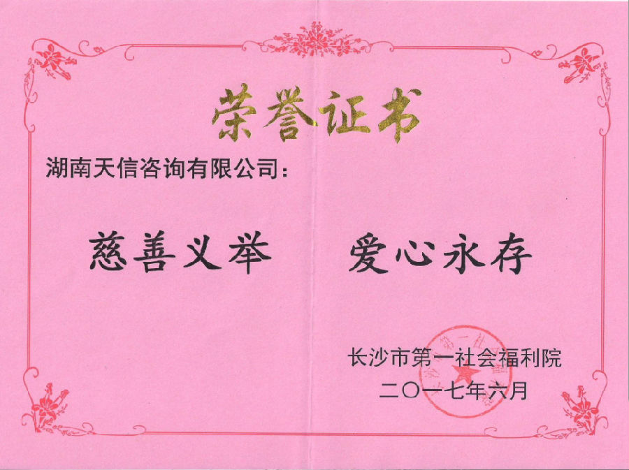 湖南天信咨詢集團(tuán)于2017年6月開展本年度愛心慈善活動(dòng),本次愛心慈善活動(dòng)得到了集團(tuán)領(lǐng)導(dǎo)和員工的大力支持。湖南天信咨詢集團(tuán)董事長李宏天先生認(rèn)為支持和參與慈善公益事業(yè),既是企業(yè)對社會(huì)的一種奉獻(xiàn),也是企業(yè)的一種社會(huì)責(zé)任。湖南天信咨詢集團(tuán)的發(fā)展理念不僅僅是追求企業(yè)利潤,還是在公司發(fā)展壯大的同時(shí)參加社會(huì)公益活動(dòng),以實(shí)際行動(dòng)回報(bào)社會(huì)。